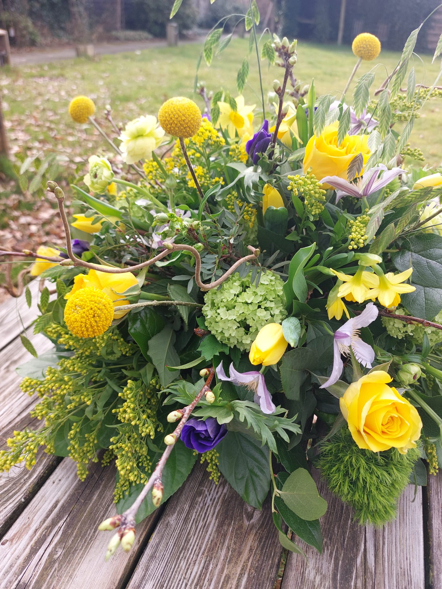 Het schikken van zijdebloemboeketten behoort tot een van de specialiteiten van Getty en Janet. Na afstemming wordt een boeket op maat samen gesteld. Het voordeel van zijdebloemboeketten? Ze hebben geen onderhoud nodig. Daarnaast gaan ze lang mee en zijn ze niet van echt te onderscheiden.